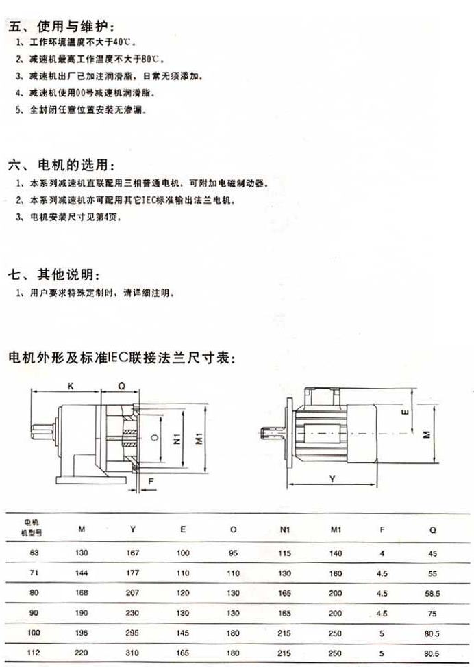 使用與維護電機的選用其他說明電機外型及標(biāo)準(zhǔn)IEC聯(lián)結(jié)法蘭尺寸表