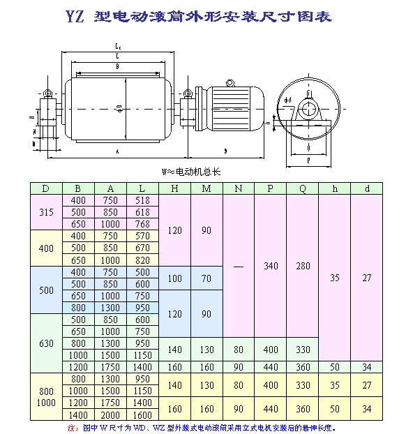 (1)因目前外裝式電動滾筒尚未制定相關(guān)行業(yè)標(biāo)準,本廠將該型號電動滾筒首位代號用W(“外裝”的首位漢語拼音)表示。外裝式電動滾筒外置電機可分為立式電機和臥式電機,用戶訂購時請加以說明;